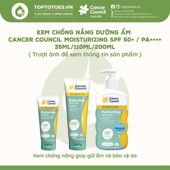 Kem chống nắng Dưỡng ẩm Cancer Council Moisturizing SPF 50+/ PA ++++