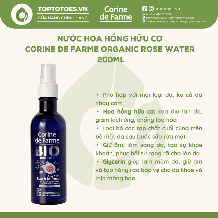 Nước hoa hồng hữu cơ Corine de Farme Organic Rose Water 200ml