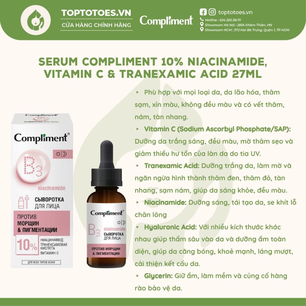 Serum Compliment 10% Niacinamide, Vitamin C & Tranexamic Acid 27ml