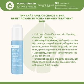 Tinh chất Paula’s Choice 4% BHA Resist Advanced Pore - Refining Treatment 30ml